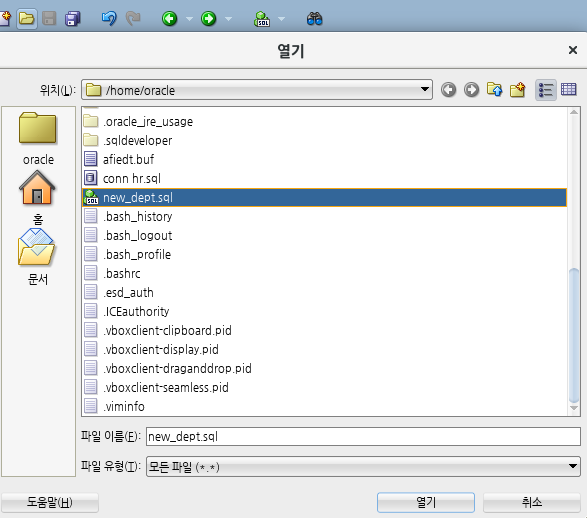 SQL> @/home/oracle/new_dept.sql -- 입력하면