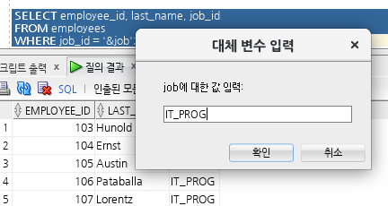 여기서 &emp_num은 치환변수로 변수명은 아무렇게나 지정해도 된다.