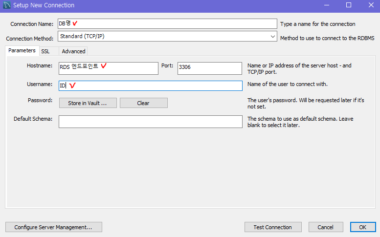 cmd에서 RDS에 접속하고 싶을 때는(mysql) 아래처럼 하고 비밀번호 입력하면 된다!