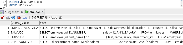 - 쿼리구문이 실행될 때 사용자로부터 테이블명을 입력받아서 실행하고(치환변수)