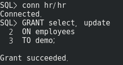 hr이 demo에게 employees 테이블의 select, update 권한을 부여한다.