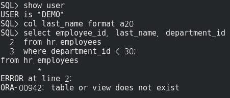 다시 demo 사용자로 접속 후 다른 테이블을 생성하려고 하면