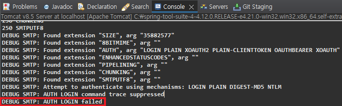 <beans:prop key="mail.debug">true</beans:prop> // 얘가 있어야 한다